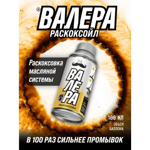 Валера Раскокосил — специализированное средство для раскоксовки двигателя, предназначенное для удаления нагара и углеродных отложений в цилиндро-поршневой группе. Помогает восстановить компрессию, снизить расход масла и улучшить работу двигателя.