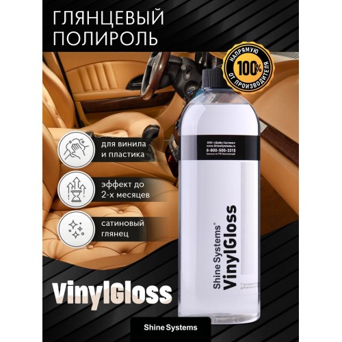 Shine Systems VinylGloss — высокоэффективная глянцевая полироль для виниловых и пластиковых элементов автомобиля. Средство обновляет цвет, придаёт глубокий блеск, защищает поверхности от пыли и выцветания, а также подчёркивает эстетичный вид салона и экстерьера.